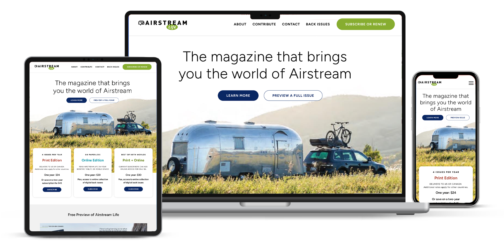 The redesigned Airstream Life website delivers a polished, editorial experience that mirrors the quality of the print magazine. By shifting to a lighter, image-forward interface and streamlining the subscription hierarchy, the site now offers a frictionless user journey. The result is a digital presence that not only captures the romance of the open road but also functions as a highly effective conversion engine for the publisher.